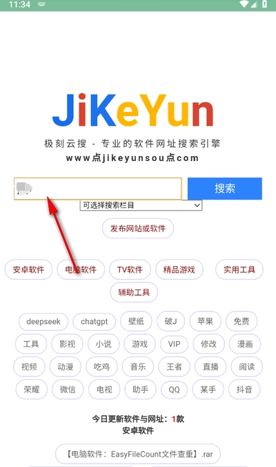 1、打开极刻云搜并进入首页,在输入栏中填写你想要搜索的资源