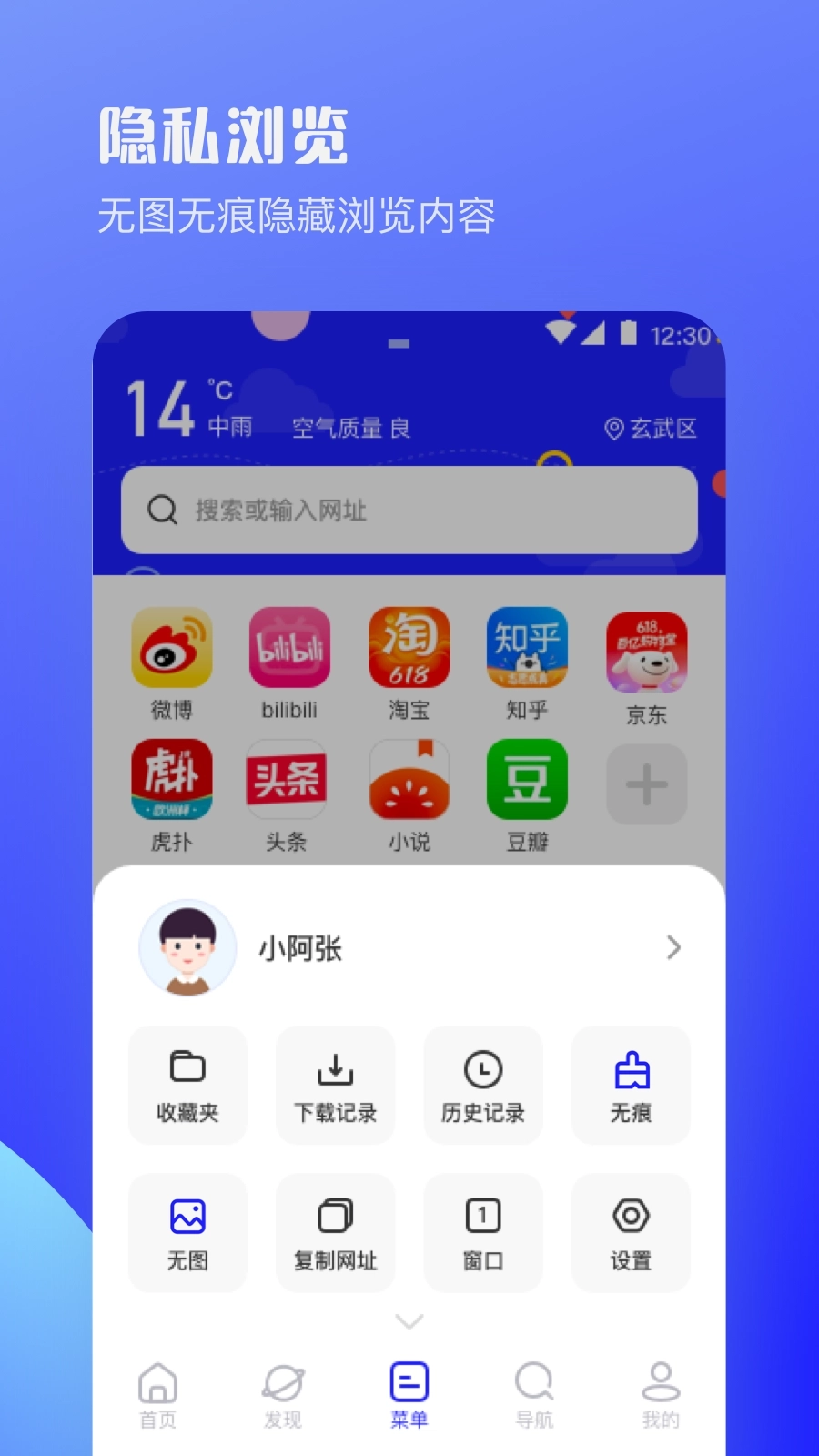 4、用户点击底部的【菜单】可以设晋无痕浏览模式