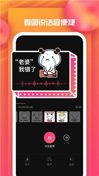 录制配音:用户可以按照配音素材进行配音,并使用变声功能。