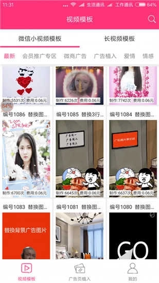 视频模板分类:视频模板依据类型来划分,这样能让用户更便捷地找到自己感兴趣的内容。