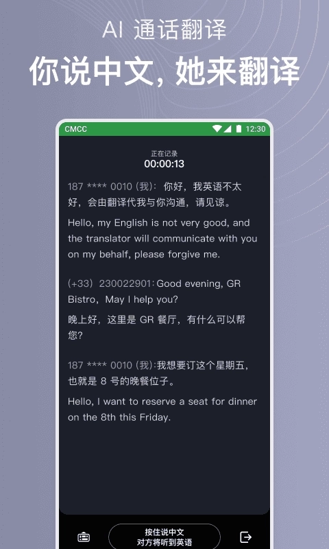 -通话内容实时录音并转文字,可区分说话人