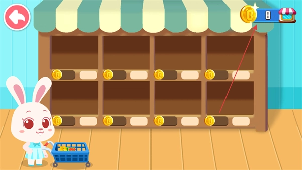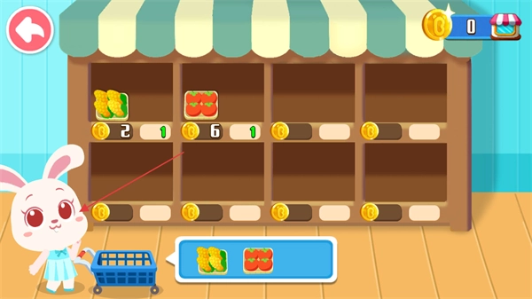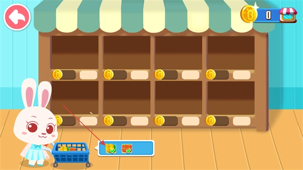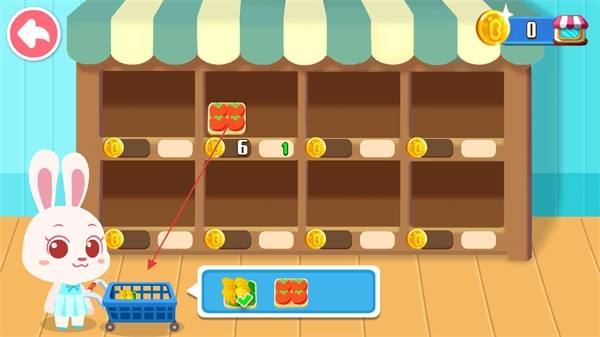 按照下方的提示,从货架上挑选出对应的物品(比如黄色的蔬果)放进购物车,这样就能启动采购流程了。