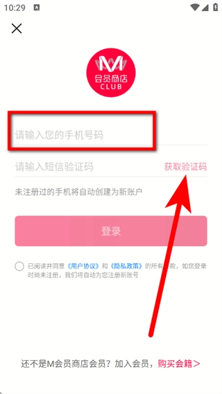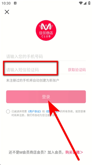 输入短信验证码,勾选相关协议后,点击登录按钮,即可完成登录操作。