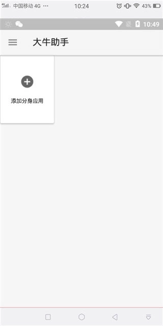 3、清除之后,打开大牛助手软件。点击添加分身应用。