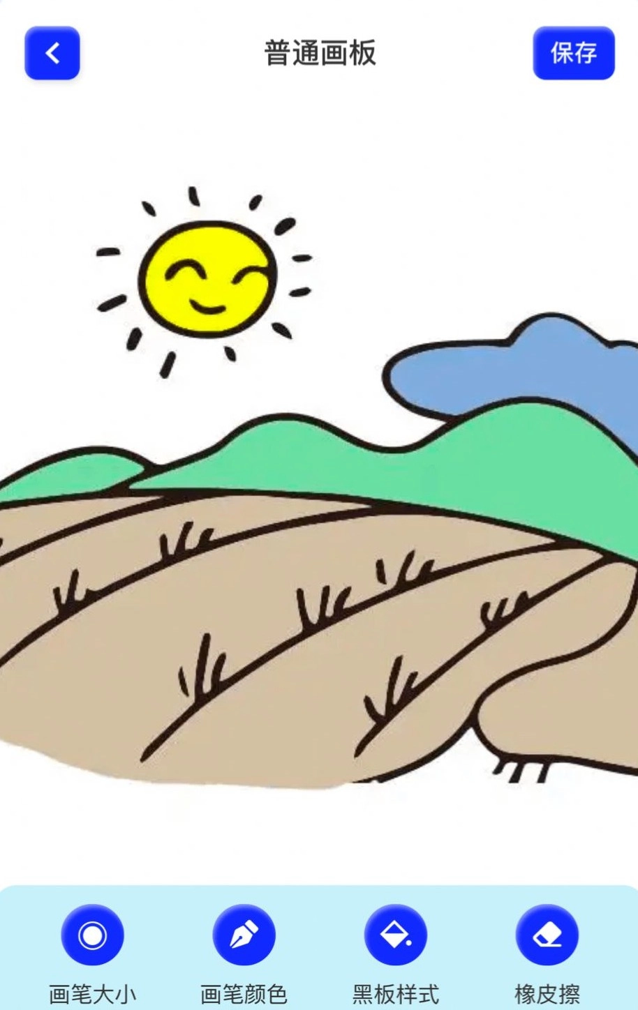 2、画板:可调节画笔的粗细与颜色,也能自定义颜色,同时支持对橡皮擦粗细进行调节。