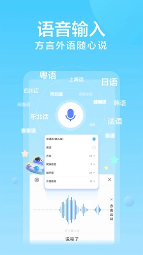 讯飞输入法13.1.4版本支持免费使用各类打字功能,不仅兼容多种语言与输入方式的切换,还具备良好的适配性和的海量词库支持。