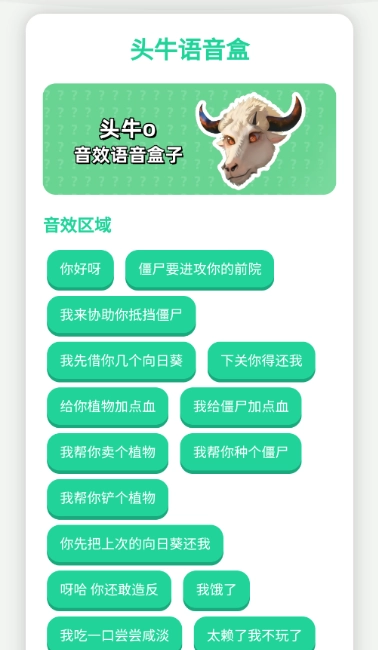 头牛语音盒是一款整合了B站植物大战僵尸游戏区UP主【头牛o】各类经典语录的语音包软件,里面收录了这位UP主超多经典语音内容,像“我给僵尸加点血”“你先把上次的向日葵还我”“我吃一口尝尝咸淡”这类极具特色的语录都包含在内,整体风格十分魔性。