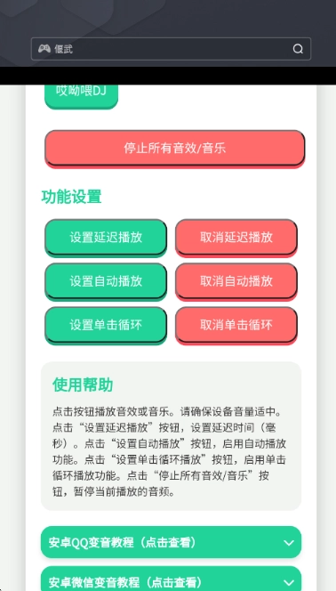 2、播放时可随时点击“停止所有音效/音乐”来暂停