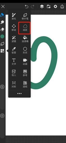 3、接着回到画布界面,此时整个界面呈现灰色状态——灰色区域代表未被选中的部分,而被选中的区域则会显示为白色。画世界Pro里的选区操作方式和柳叶笔工具的使用逻辑比较相近,和PS的选区方式存在一定差异,大家可以亲自尝试操作一下,总之完成选取后的效果就是这样: