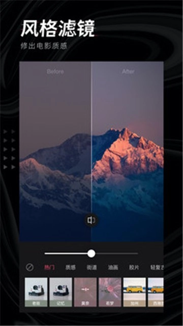 1、依托先进的图像处理技术,软件运行效率得到深度优化,无论是图片加载环节还是滤镜应用过程,均能达成秒速响应效果,为您带来流畅无阻的编辑体验。