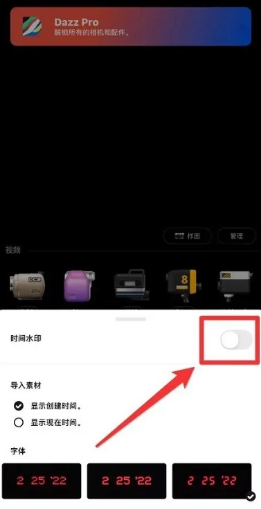 3、把时间水印右侧的按钮关闭就行,这样拍摄的照片就不会有时间水印了。