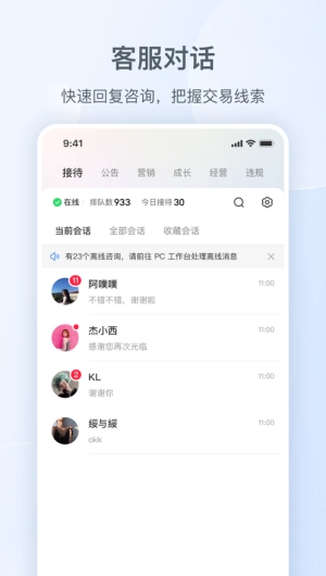 2、帮助商家第一时间回应客户咨询,抓住每一个潜在的交易契机。
