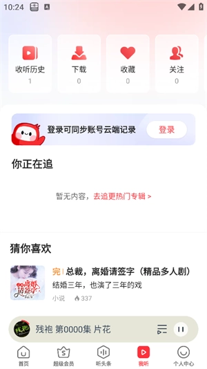 在“我听”板块里,你能找到自己的收听历史与文件,无论何时何地都能接着阅读之前的内容。