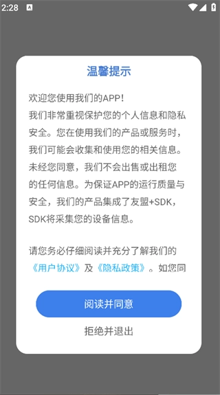 并安装,点击‘阅读并同意’,即可进入主页面;