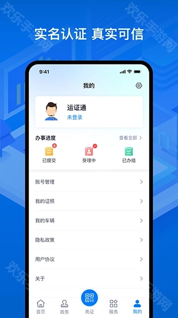 1、先注册并登录运证通App,随后按照提示完成实名认证。