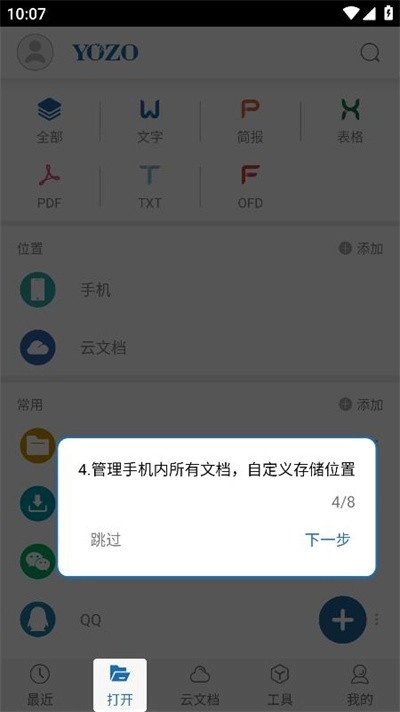 4.在【打开】专栏内你能管理手机内的所有文档。