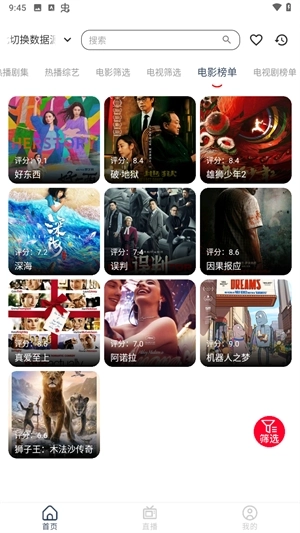 2、除此之外,这款软件还具备实时电影榜单功能,能够协助我们筛选出一众优质影片。