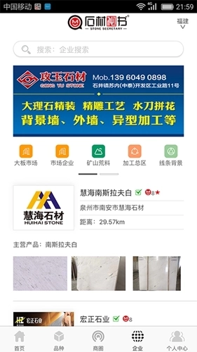 1、海量企业集合点,方便用户寻找石材企业进行了解。