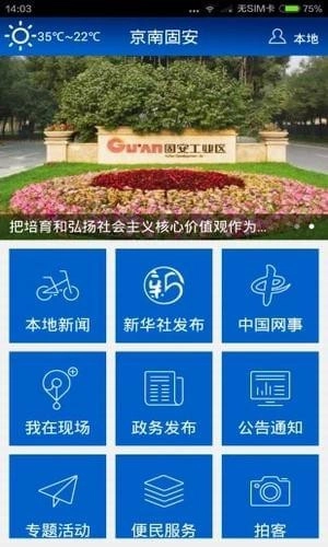 京南固安是一款由河北小君科技有限公司所研发的城市服务软件,一款专门为固安所设计的软件,如果你来到固安,不使用京南固安,那绝对是一种可惜,为你提供快捷的服务,让你更迅速的融入京南固安的生活。一款便捷的政务服务,集新闻资讯、公告通知、信息公开、办事指南及办事进度查询、游玩攻略、随手拍等功能于一体。