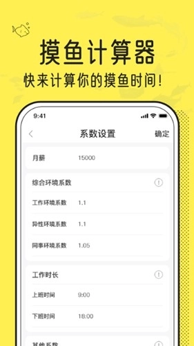 1、这款软件的计算速度相当快,能够依据各类系数,算出你上班工作期间摸鱼的时长。