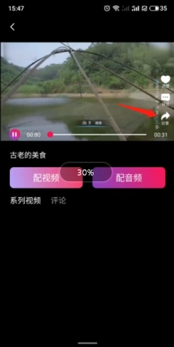 2、进入视频播放页面,点击“分享”选项即可。