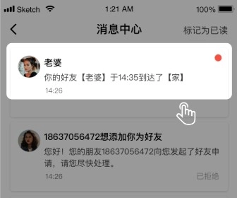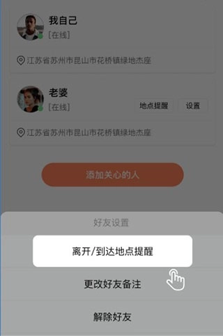 5、添加完成后,当好友离开或抵达指定地点时,你都能收到实时通知。