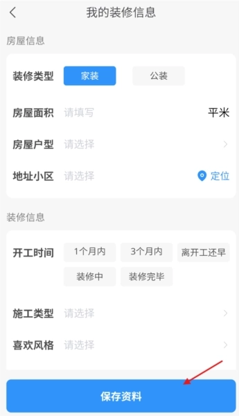 2、账号注册:打开对应平台,使用手机号完成注册登录操作,并完善个人装修需求相关信息。