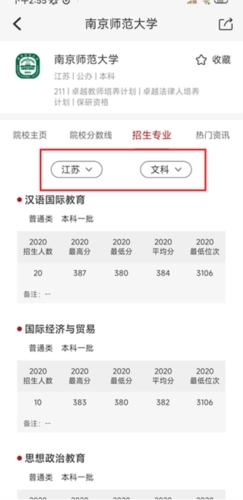 4、可在南京师范大学查询江苏地区的录取专业情况,以便大家更合理地选择专业。