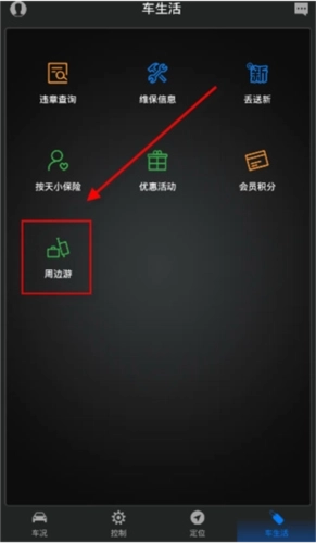 2、在“车生活”界面点击“周边游”;