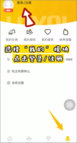 2、选择“我的”板块,点击“登录/注册”按钮完成登录操作。