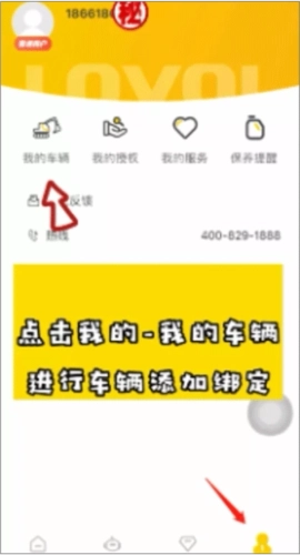 3、进入“我的”页面后,点击“我的车辆”选项,完成车辆的添加与绑定操作。