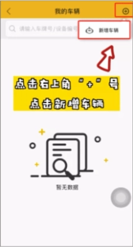 4、进入“我的车辆”管理页面后,点击右上角的“+”按钮,或者点击“新增车辆”选项。