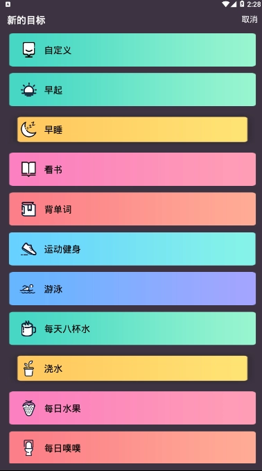 1、1你可以依据自身时间规划最适合的打卡目标,长期坚持下去能够帮助你改掉一些坏习惯。