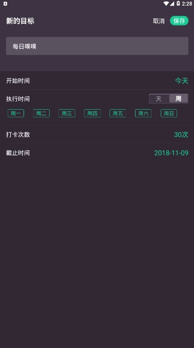 2、目标温馨提醒,打卡记录