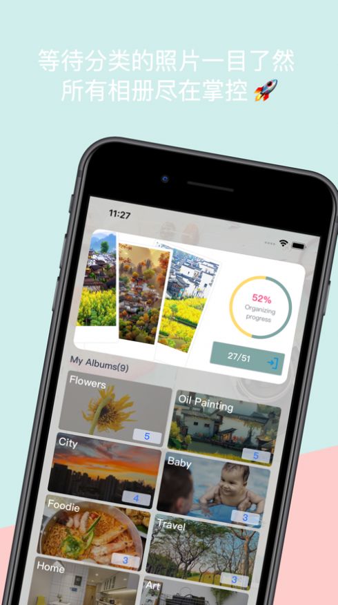 1、未整理进度查看:等待分类的照片一目了然,所有相册尽在掌控。