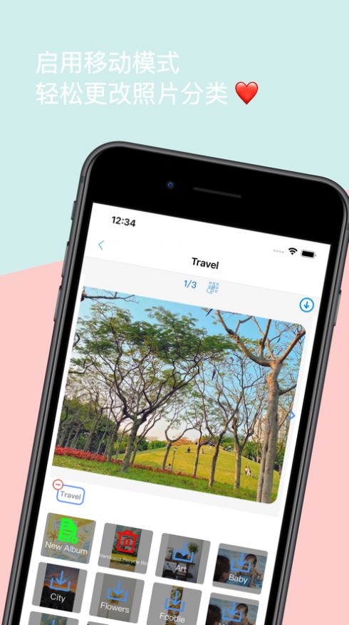 1、照片整理:启用移动模式,轻松更改照片分类。