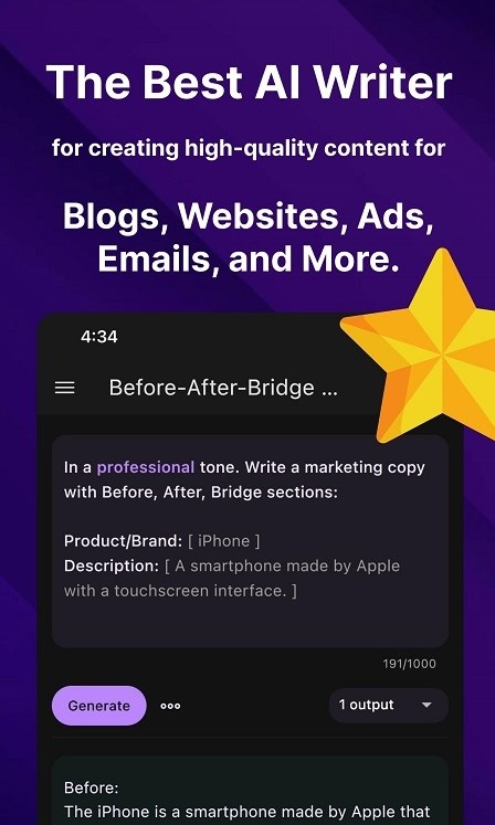 1、专为需要进行内容创作的用户打造的一个智能写作工具。