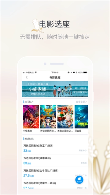 2、超多商品显示抢购,还为用户提供电影选座,随时随地选位置。