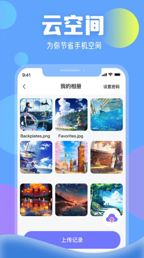 1、超大云空间,让你轻松上传手机中的各种图片和照片,释放手机内存,不占用手机性能;