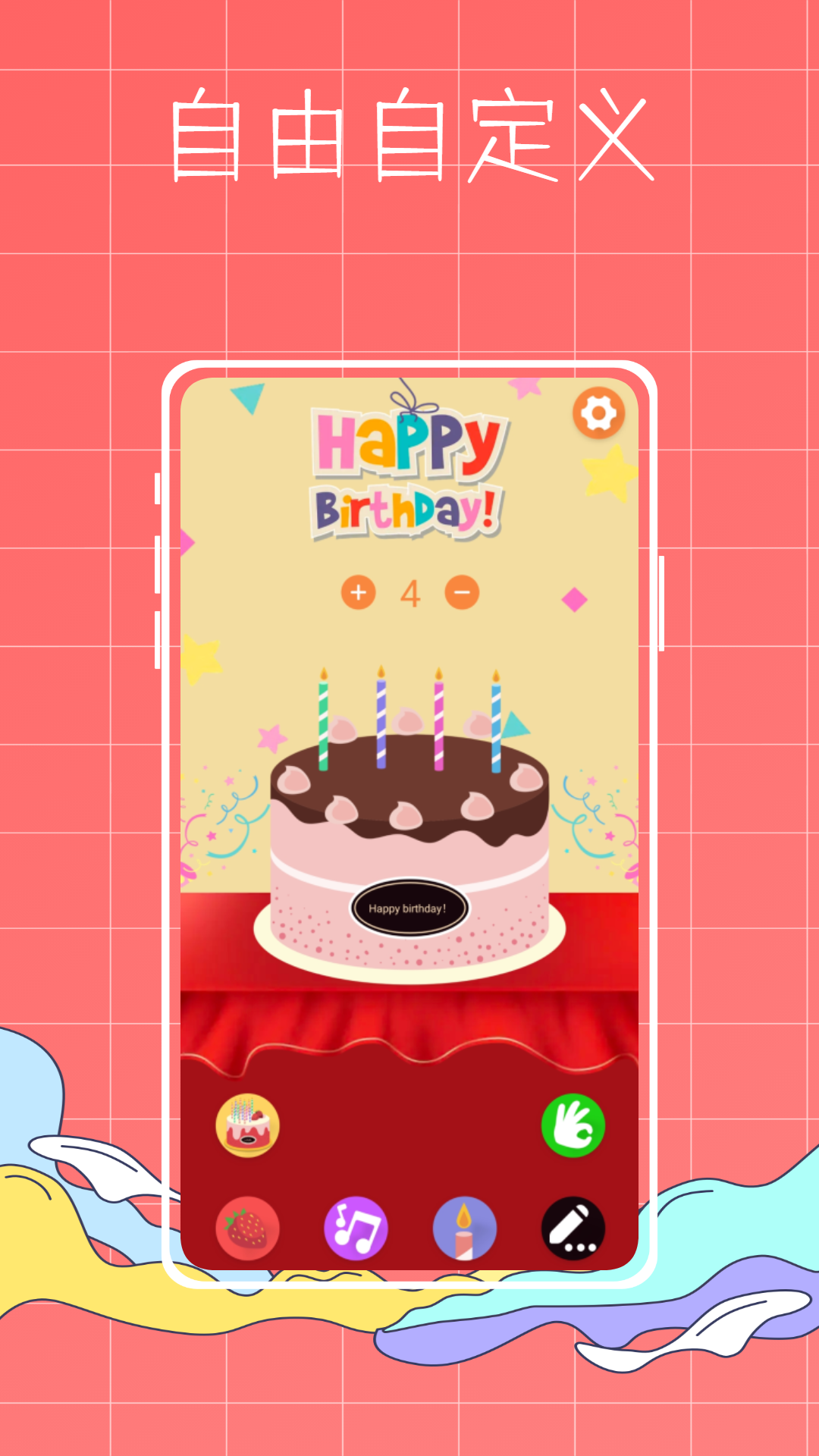 2、模拟真实的生日庆祝场景,自由设置蛋糕上面的文字。