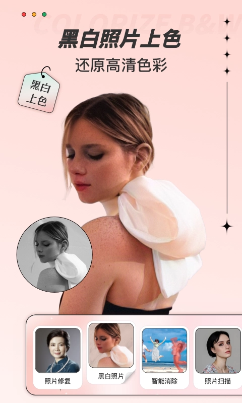 用户可以在这里进行上色,还原,一键修复,所有的功能操作十分的简单,并且这里还有新手教程可以学习。