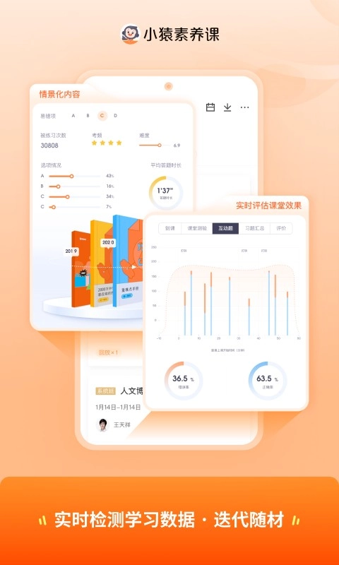小猿素养课这是一款可以在线进行课程学习的手机app,用户可以这里进行轻松学习,多种学习模式可以自由选择使用,使用户可以在这里感受不一样的学习氛围,这里所有的课程全部都是免费学习的,用户可以在这里进行学习计划的制定,使用户可以随时随地进行学习进程的查看和了解。