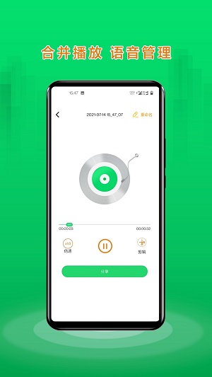 语音合并助手是一款能够帮助用户们在线完成语音记录和语音合并的软件,在这个软件上面用户们能够看到不少的实用工具都是可以使用的,能够很好的满足用户们的使用需求,帮助用户们解决各种问题,处理文件和语音的整理和管理也是没有什么难度的,有需要的用户们快来这里下载使用一下试试吧。