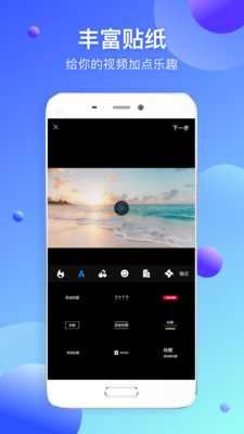 丰富多样的贴纸为你的视频加点料,轻松有趣的音乐让你的视频更加多彩。