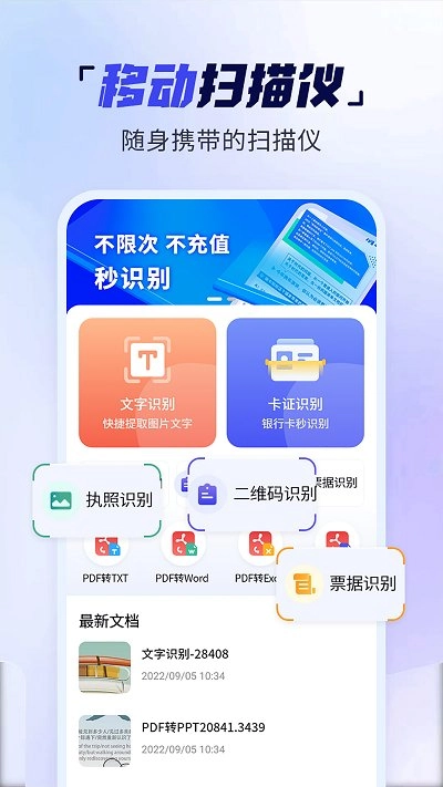 扫描多能王是一款十分好用的文件扫描助手,在这个软件上面用户们可以看到非常多的文字识别功能可以使用,帮助用户们直接翻译不同国家的语言,让用户们在阅读国外的书籍和文章的时候可以更加的轻松,感兴趣的用户们千万不要错过了,还可以识别不同的图片,进行文件格式的转换等等。