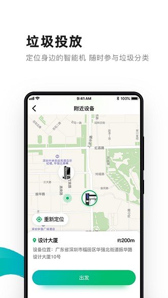 1、找到最近的垃圾分类智能设备,让垃圾分类投放更加方便准确。