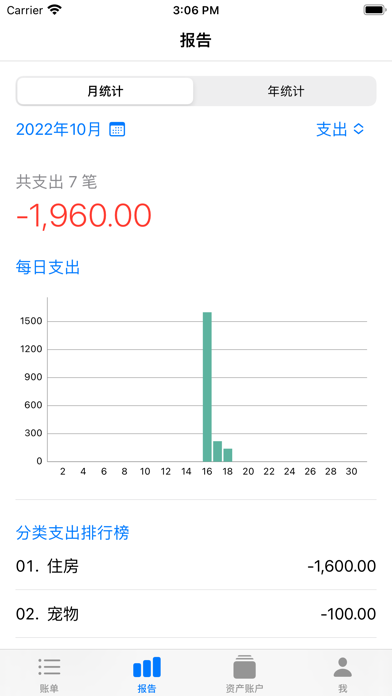 2、图表显示更清晰。 根据相关消费情况,平台会自动生成分类报表,用户日常开支一目了然。