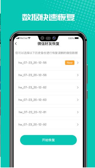 2、恢复手机微信:一键找到误删除的微信朋友、闲聊信息。
