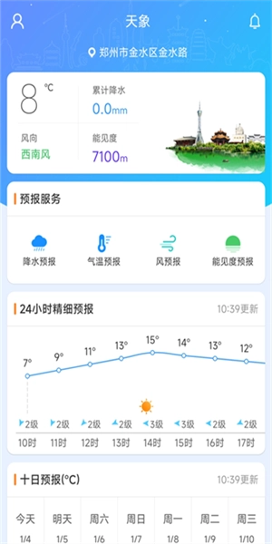 2、并提供未来十天的趋势情况,让用户无障碍获知天气预报信息。