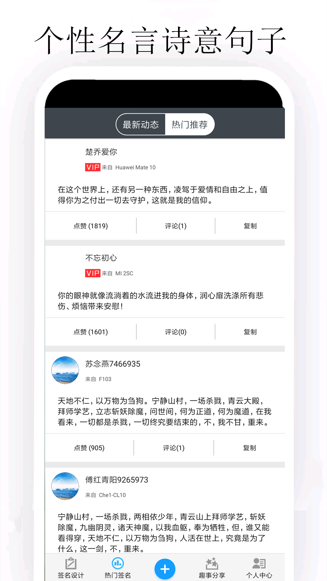 1、除了个性签名,还有海量个性名言签名,热门语录实时更新推送